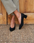 Zapato salón en ante color NEGRO, escote en forma uve. Forro de cordero, muy blando y favorece la adaptación al pie con muy pocos usos.