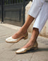 Modelo CARLA, francesita combinada en piel laminado color ORO, apertura en los laterales.