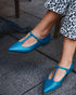 Mercedita hebilla con forma de “T” con punta fina, fabricada en piel de cordero, suave y adaptable, forro interior de piel.