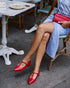Mercedita hebilla con forma de “T” con punta fina, fabricada en piel de cordero, suave y adaptable